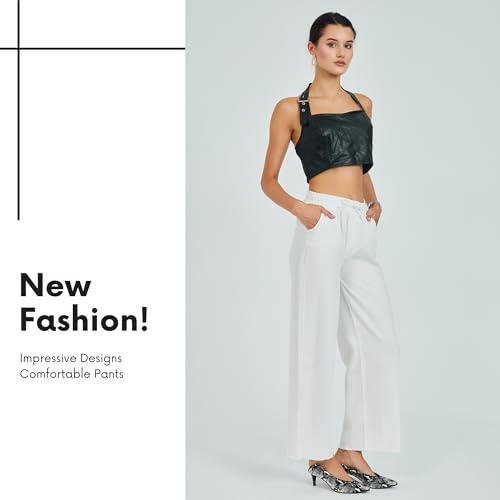 Womens Pants | High-Waisted Wide-Leg Elastic Waist Long Trousers Skirts | Casual Women's Relaxed Outfits 4