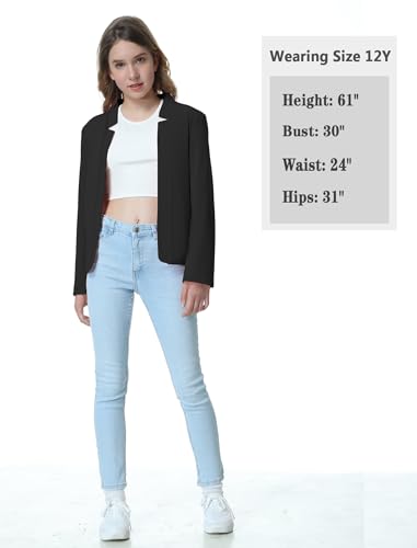 Mebius Girls Blazer Jacket with Inner Pocket Long Sleeve Notched Collar/Lapel Collar Open Front Casual Kids Blazers Suit 6