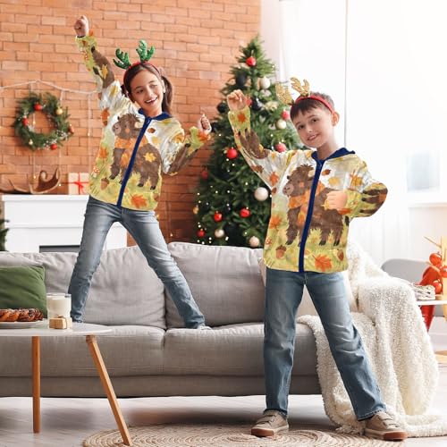 • HOODED FLEECE JACKET: Kids fleece jacket is made of high quality heavyweight cotton fleece fabric, 100% polyester, lightweight,warm and soft.