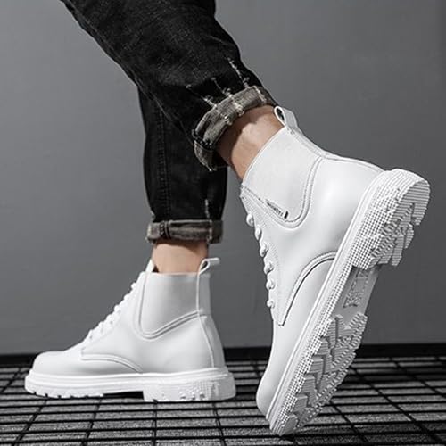 Men's Round Toe Lace Up Low Heel Combat Boots Elastic Panels Non Slip Lug Sole High Top Sneakers Ankle Boots for Work Outdoor Casual 6