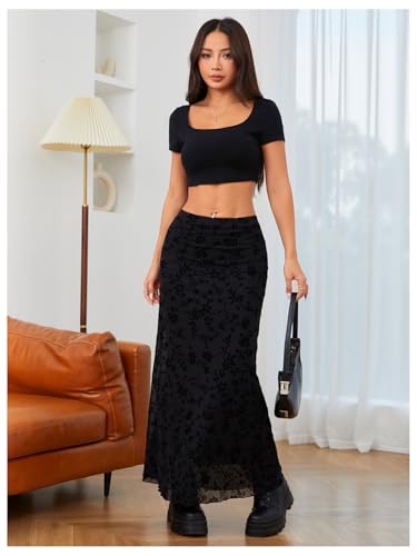 More information about Milumia Women's Floral Print Mesh Long Skirt Low Waisted Y2k Flare Hem Fishtail Skirts