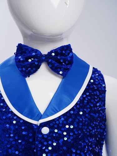Kids Boys Girls Sparkly Sequin Vest Sleeveless Button Waistcoat with Bowtie Velvet Jacket Party Outfit 6
