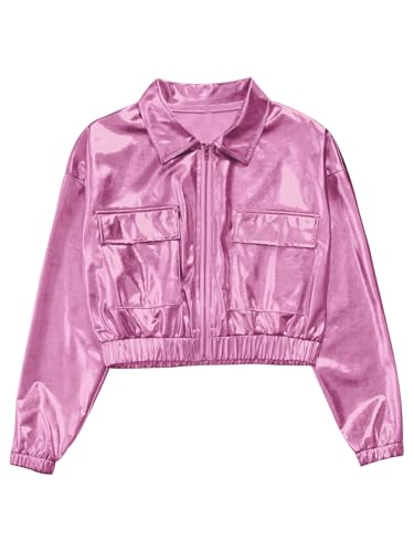 Metallic Jacket for Boys Girls Hip-Hop Jazz Dance Jacket Holographic Shiny Crop Party Jackets 6