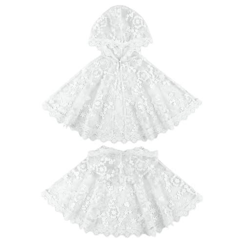 Kids Girls Floral Lace Dress-up Cloak Hooded Poncho Coat Formal Dress Jacket Cover up 2