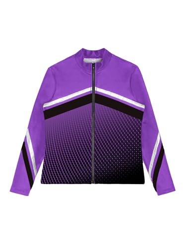Kids Girls Gradient Dots Printed Long Sleeve Jacket Outerwear Color Block Zipper Figure Skating Sweatshirt 7
