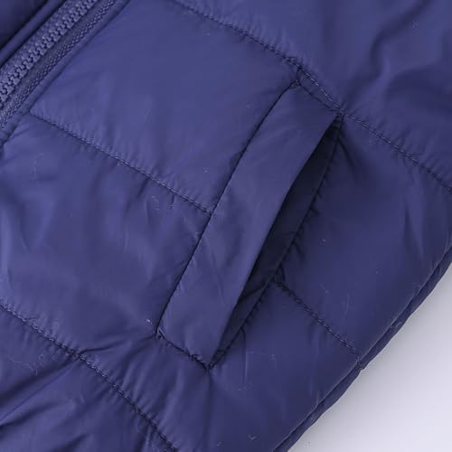EnJoCho Boys Girls Middle Kids Hooded With Pockets Solid Color Short Cotton Jacket Ski Jacket Girls (Navy, 5-6 Years) 4