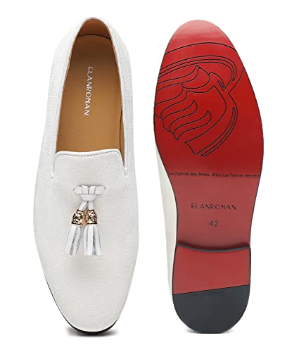 ELANROMAN Men's Loafers Tassels Penny Slip-On Luxury Wedding Shoes 6