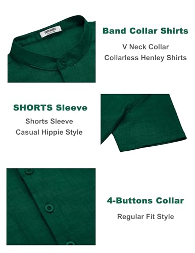 COOFANDY Men's Casual Henley Shirt Short Sleeve Summer Shirts Linen Band Collar Summer Beach Hippie T-Shirts 4