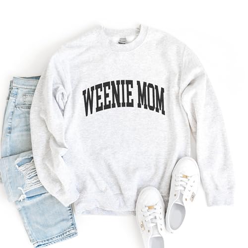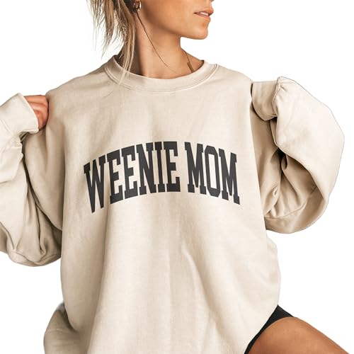 More information about Weenie Mom Varsity Sweatshirt, Cute Dachshund Pet Parent Sweater, Doxie-Dog-Mom Gift, Dog Lover Shirt, Unisex Womens Crewneck Sweatshirt Sand