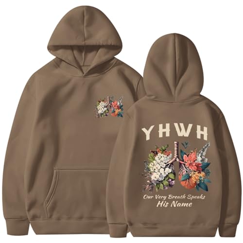 • Christian Men's Hoodie: Boldly proclaim 'YHWH – Our Very Breath Speaks His Name' with floral lungs intertwined in a cross. This powerful design merges breath, creation, and worship—a scripture-rooted testament to divine presence in every heartbeat