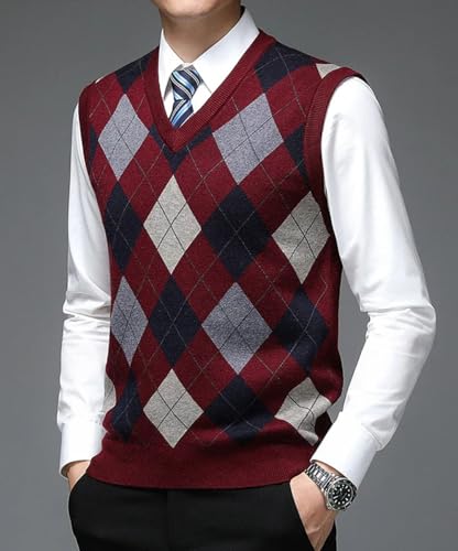 Men’S Fashion Designer Argyle Diamond V-Neck Sweater Vest Wool Blend Sleeveless Casual Pullover Tank Top 5
