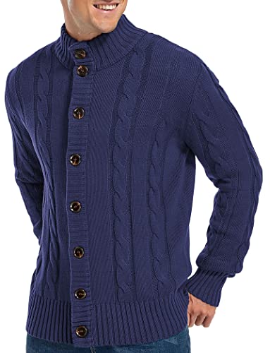 HOT ! Aimeilgot Mens Fashion Casual Slim Fit Button Down Cable Knitted Stand Collar Cardigan Sweater
