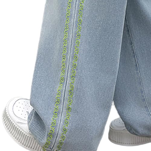 • Stand out with these girls baggy jeans! The baggy jeans girls design comes with eye - catching fluorescent green snake embroidery trim on the sides, adding a trendy touch to tween girls trendy clothes, making them perfect for fashion - forward kids.