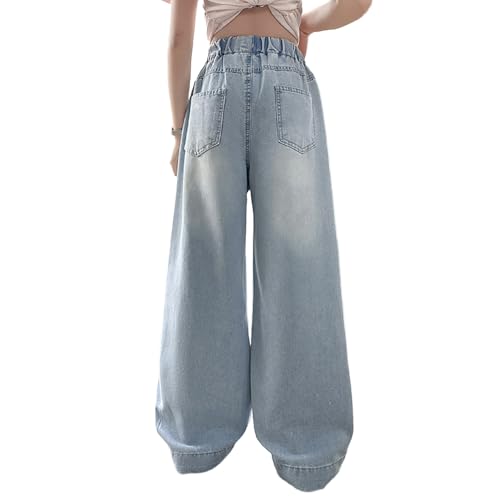 HOT ! Tween Girls Baggy Jeans-Wide Leg Pearl Denim Pants with Pockets, Fashion Casual Elastic Waistband Jeans for Girls