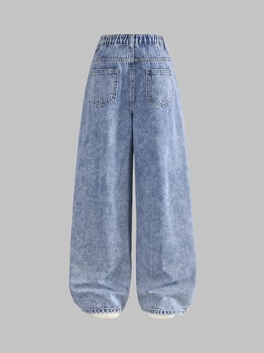 SHENHE Girl's Wide Leg Jeans High Waisted Heart Embroidered Casual Cute Loose Preppy Kid Denim Pants 5