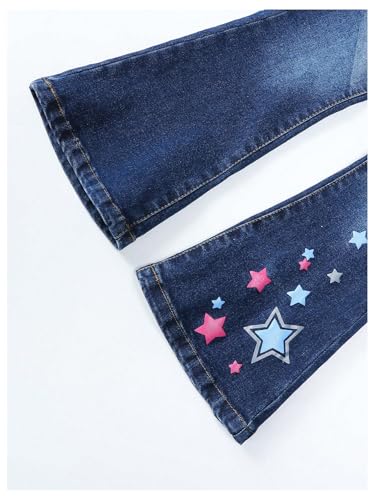 WDIRARA Girl's Star Print High Waist Flare Bell Bottom Jeans Stretchy Denim Pants 6