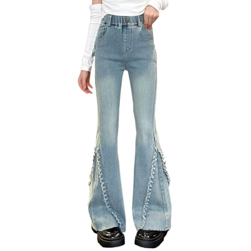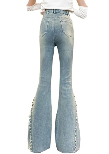 Girls Solid Colored Flare Bell Bottom Jeans Kids High Waist Cute Frayed Hem Flared Denim Pants 7