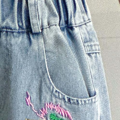 More information about Girls Jeans Cargo Pants Baggy Embroidered Wide Leg High Elastic Waist Kids Straight Denim Pant with Pockets 5-14 Y