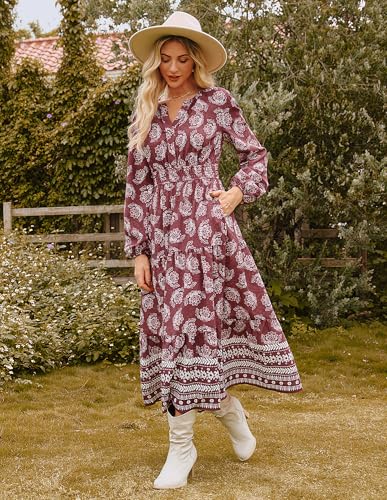 GRACE KARIN Women Fall Wedding Guest Dresses 2025 Floral Long Sleeve Maxi Dress Boho V Neck Empire Waist Dress 5