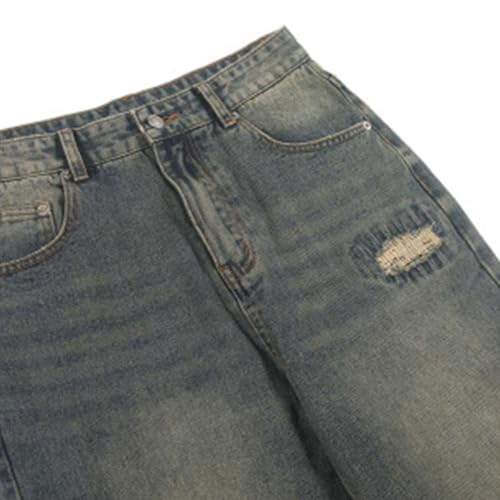 HOT ! Cambkatl Men's Drawstring Straight Leg Jeans Stretch Ealstic High Waisted Loose Baggy Denim Pants with Pockets