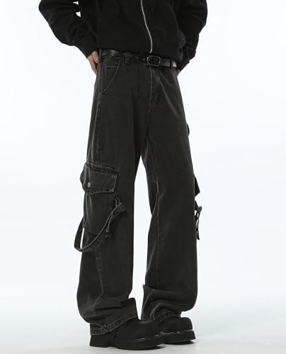 More information about Men's Casual Baggy Jeans Loose Fit Straight Leg Mid-Rise Fashion Hip-Hop Cargo Denim Pants with Pockets