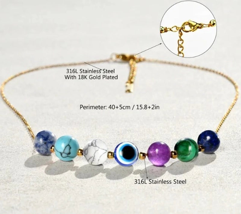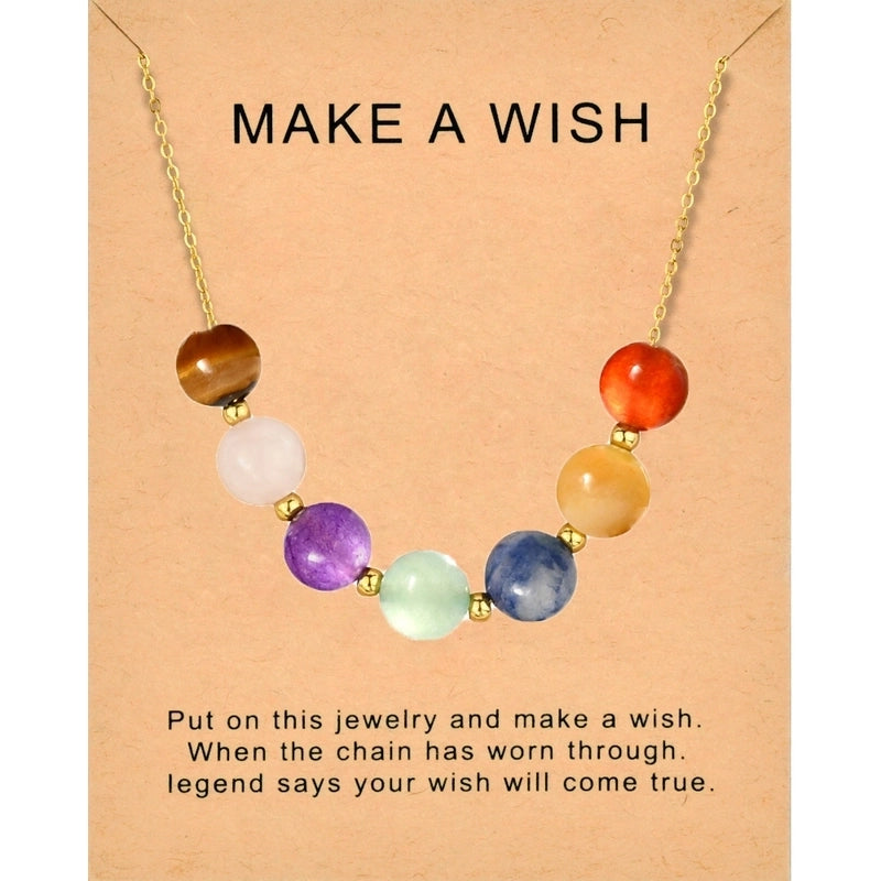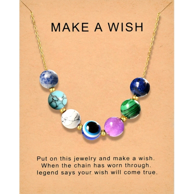 Vintage Style Color Block Stainless Steel Artificial Gemstones Natural Stone Gold Plated Pendant Necklace In Bulk 7