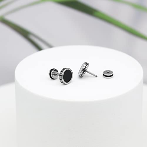 More information about 2025 Best【Hypoallergenic Earrings for Men】-18G Flat Mens Surgical Steel Black Stud Earring 10mm (0.4")-【For Sensitive Skin & New Piercings】 Textured Brick Design Pair 0.28oz Men's jewelry-Para Hombre