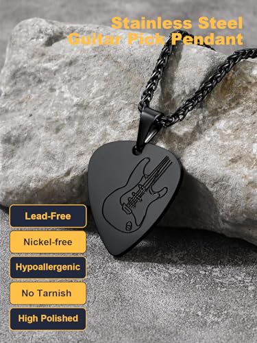 U7 Guitar Pick Necklace with Adjustable Rope Chain Black Plated Stainless Steel Music Tool Plate Jewelry Men Women Pendant 1
