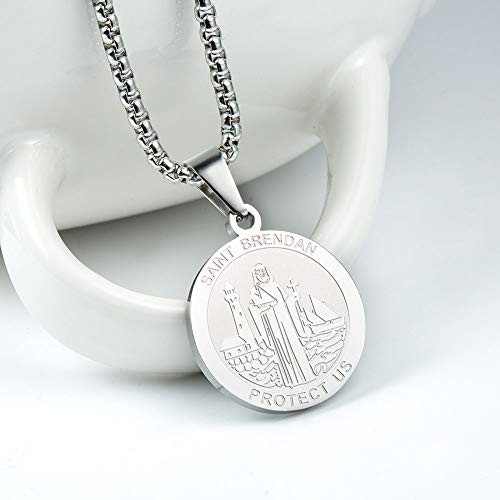 HOT ! Wolentty Saint Brendan Necklace - 1" Stainless Steel Catholic St. Brendan Medal Pendant with 24" Chain