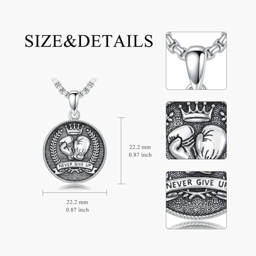 • Material: Boxing Glove Necklace made of real 925 sterling silver. Stainless Steel Chain. Retro Oxidation. Hypoallergenic, lead-free, nickel-free, cadmium-free. Smooth and durable, not easy to fade, rust, tarnish, and more suitable for men or women with sensitive skin