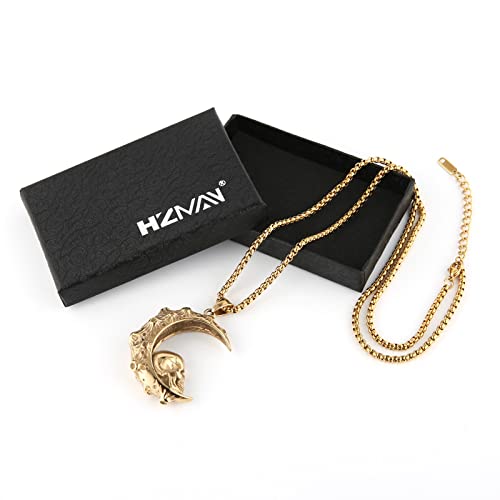 HZMAN Mens Women Gothic Retro Moon Crescent Skull Stainless Steel Pendant Necklace 22+2 Inch Chain 5