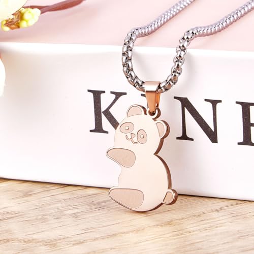 • 🐼 MATERIAL: The adorable panda necklace was made from stainless steel which is popular in the U.S.A. for durability, and resistance to rusting, tarnishing, changing color, and corroding.