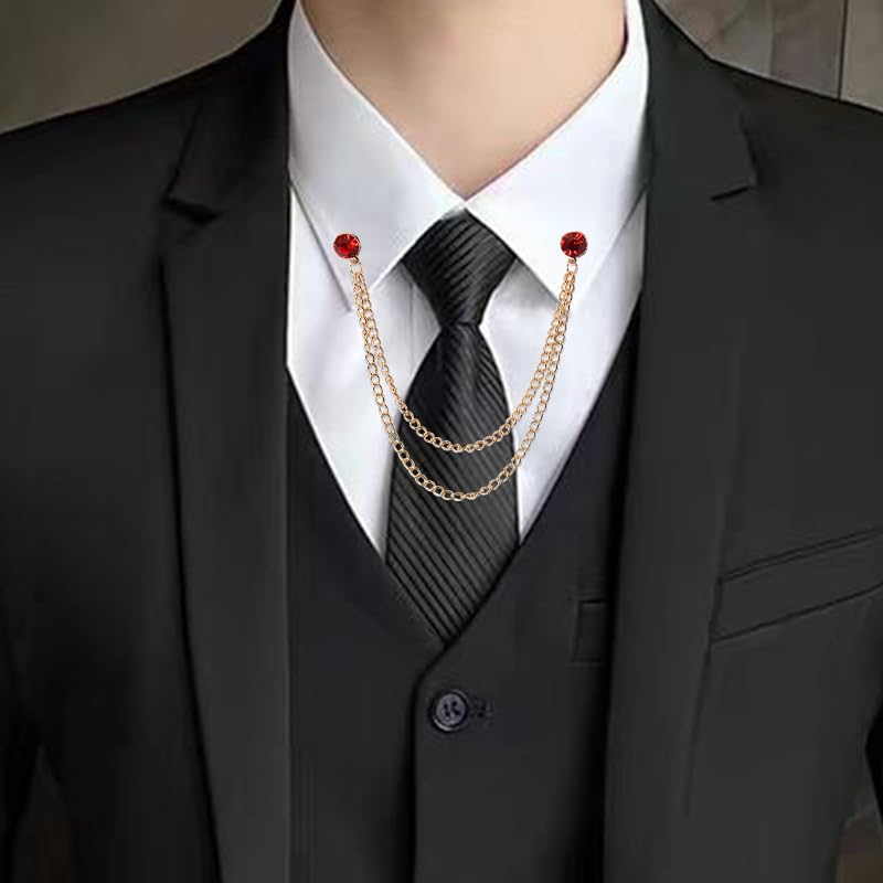 • Rhinestone Brooch Pins for Men: The double layered chain tassel design, paired with red rhinestones, makes this collar chain brooch look simple yet delicate, helping you stand out with unique accessories and showcasing your personal style. Whether you're pairing it with a regular shirt or a formal suit, this mens suit brooch pin is an excellent choice, great clothes accessories for men boys