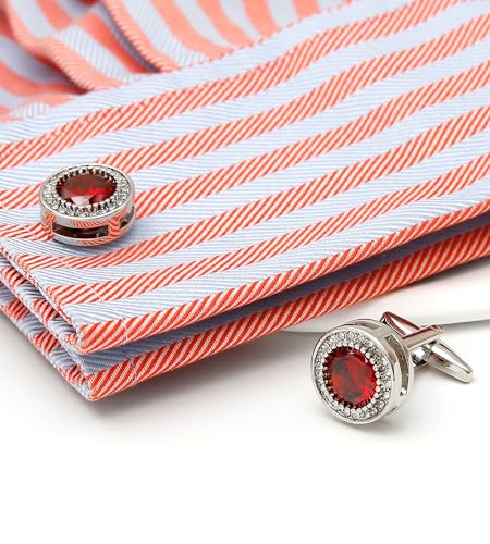 Jonwo Red Crystal Gemstone Cufflinks for Men Lady In Gift Case Silver Round Men's Cufflinks Jewelry Set for Wedding Anniversary Business Party Events Tuxedo Dress Shirt 6