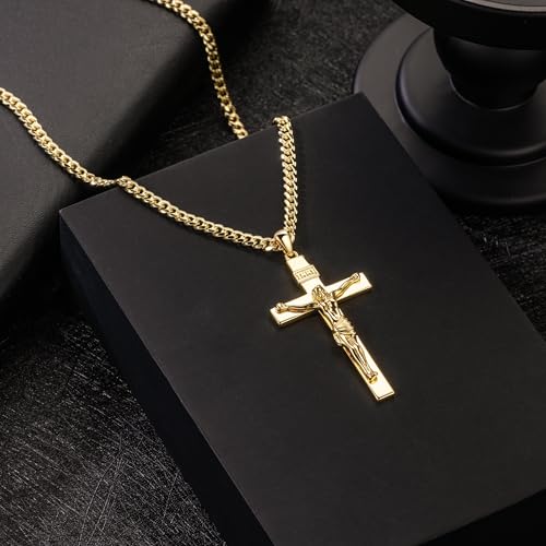 • [Dress Up Your Devotion] Whether paired with a casual outfit or formal attire, this mens cross necklace adds a touch of sophistication and spiritual significance to any look. Our cross necklace gold is versatile, timeless, and always in style. Isn’t it time your accessories told a story