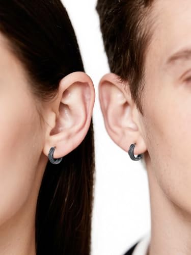 Black Earrings 925 Sterling Silver Black Hoop Earring Jewelry Gifts for Men 4