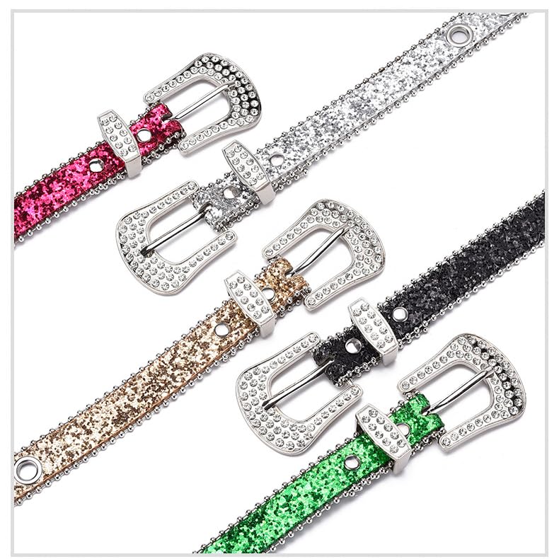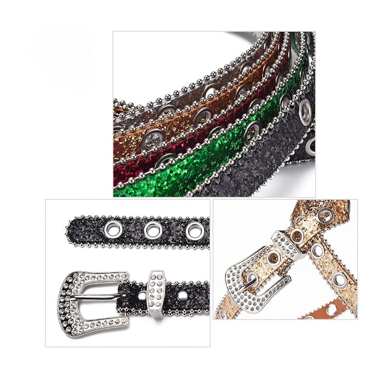 Rhinestone Western PU Sparkly Belt for Men Women Vintage Bling Waist Belts for Pants Jeans 7