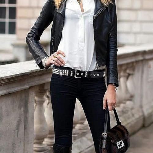 Punk Leather Belt,Studded Belt Beads Rivet Belt Metal Pyramid Belt for Men Women Clothing Matching, Belts Black 1
