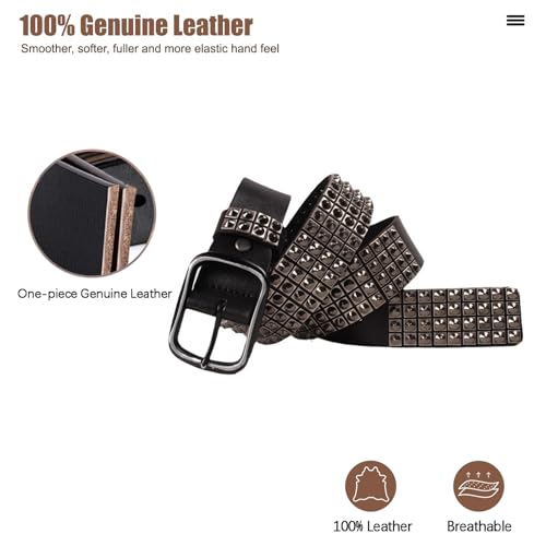 • 【Better Quality】Crafted with thickened genuine leather, our studded belt ensures durability, making it a long-lasting and reliable choice for both men and women. Designed with comfort in mind, this punk belt offers a smooth and soft feel, allowing you to wear it all day without any discomfort