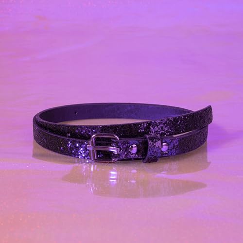 Blingbling Waist Belt Sequined Buckle for Street Dance Jean Belt Punk Waist Chain Shimmering Glitters Black and Silver Belt Set 6
