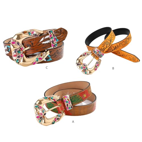 • Classical embossed belt and colorful rhinestones buckle, easily pair with your cloth.
