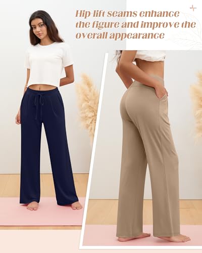 • Considerate and Fashionable Design: the women's wide leg yoga pants feature wide leg, elastic waistband, side pockets and butt-lifting seams which have enough room for storing smartphones and adjust the waistline of pants for women