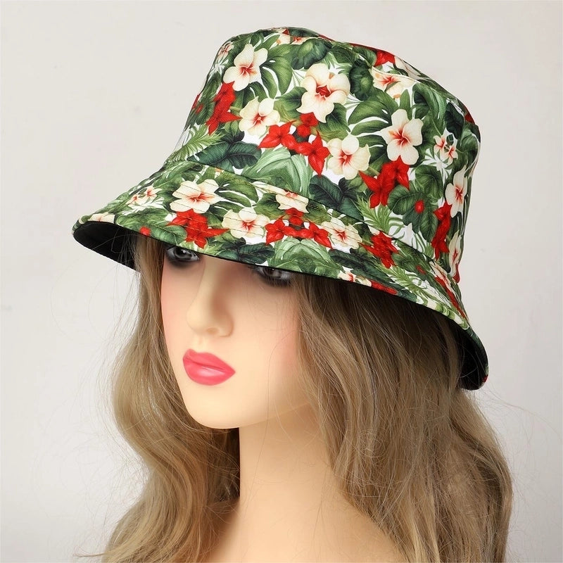HOT ! Women's Hawaiian Beach Flower Printing Big Eaves Bucket Hat
