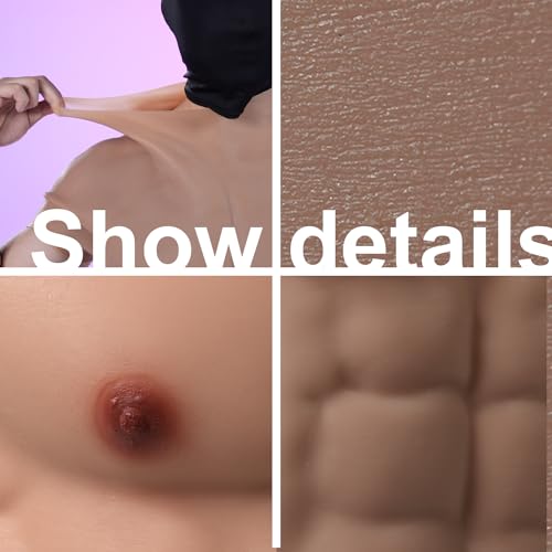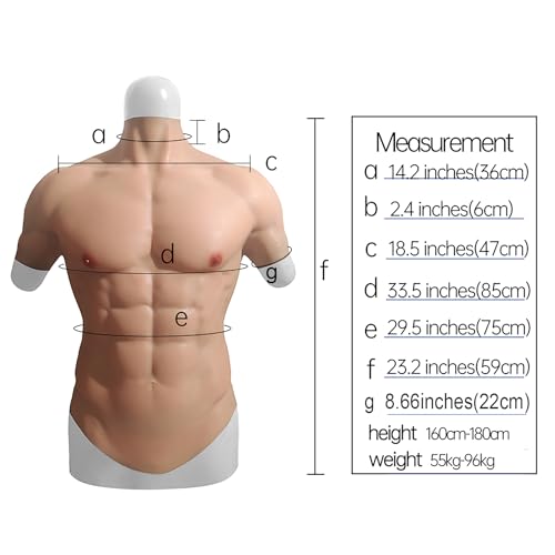 • 【Realistic design】 Detailed skin texture and lifelike skin color make it hard to differentiate the muscle suit from real human skin even at a short distance. You can get sexy abdominal muscles without training and show off your muscles by wearing any style of clothes outside.