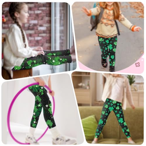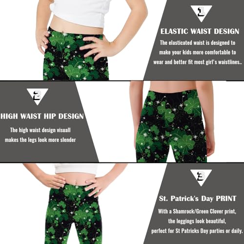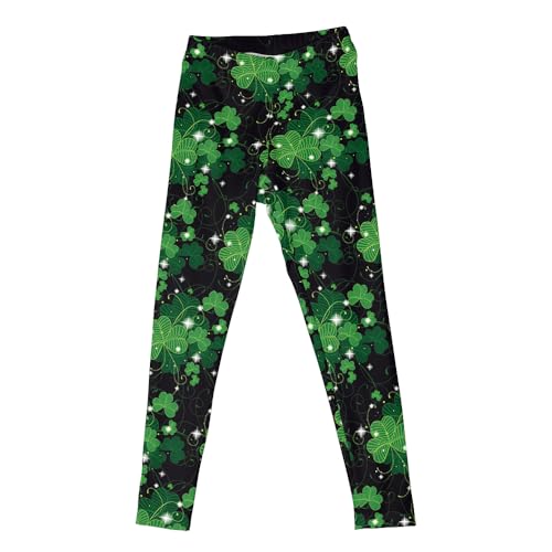 Eciodci Girls St. Patrick's Day Shamrock Leggings 3D Printed Irish Green Clover Leaves Pants High Waist Stretchy Soft Tights 7