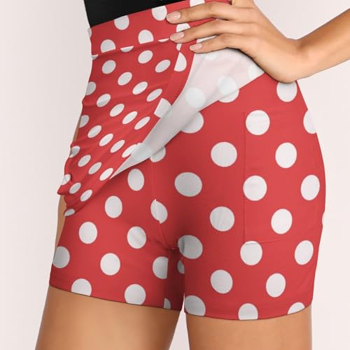 HOT ! White Polka Dot Red Print Skorts for Woman, Athletic Mini Golf Skirt Tennis Skirt for Women with Pocket