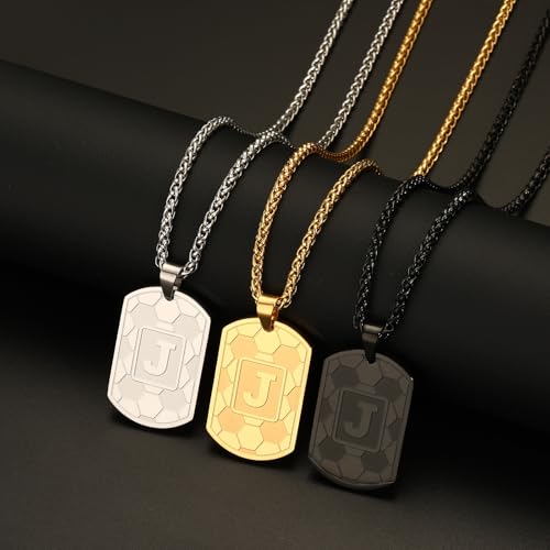 HOT ! Soccer Initial Necklace for Men Boys Kids Teen Dog Tag Sliver/Black/Gold Letter Pendant Sport Soccer Athletes Jewelry Gifts for Kids Boys Men Teens Boyfriend Husband Dad