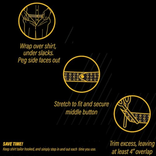 • IMPROVED BUTTON DESIGN - The new and improved button is designed to prevent tears and allow stretching so you can comfortably wear this belt for years. Stretch, then fasten with the quick-attach button, and your shirt stays perfectly tucked and neat throughout the day as well as preventing keys, cuffs, etc from pulling your pants down.