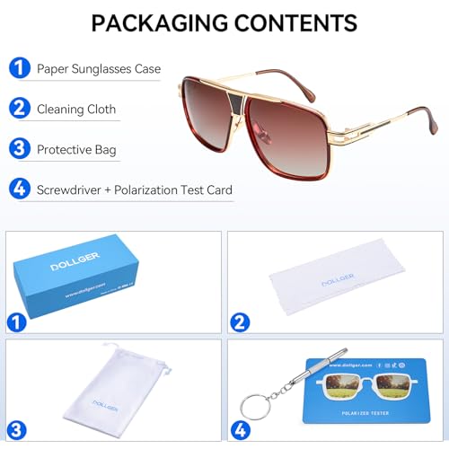 Dollger Fashion Square Aviator Polarized Sunglasses for Men Retro 70s Sunglasses Cool Designer Shades 6
