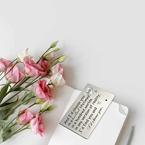 HOT ! YODOCAMP Engraved Wallet Card Insert Anniversary Card Gifts for Husband, I'd Choose You Groom's Gifts for Him, Romantic Gifts Metal Love Note for Men Birthday